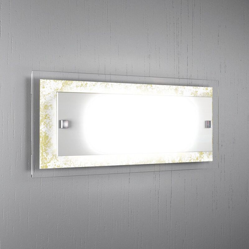 Collezione Tray L'ARTE DELL'ILLUMINAZIONE: UN TOCCO DI VETRO E LUCE Applique con struttura metallica verniciata bianca e dettagli cromati.. Il diffusore è composto da due vetri in lastra extrachiaro, quello esterno in finitura foglia oro, quello centrale è serigrafato bianco.Questo articolo è disponibile in diverse finiture e/o dimensioni. E' possibile indicarlo nell'apposito campo NOTE presente in conclusione di ordine oppure contattarci dopo aver effettuatol'ordine.