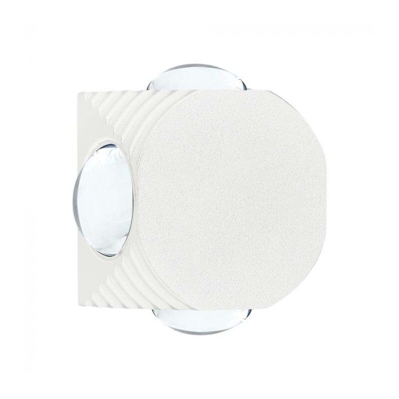 Lampada applique LED da parete 4W luce bianco naturale 4000K 390LM 60 effetto 4 fasci di luce (4 way light). Struttura dal design moderno ed elegante di forma rotonda in alluminio verniciato di colore bianco, installabile in ambienti interno o esterni Waterproof IP54. Grazie alle disposizione dei Chip LED posizionati sui 4 lati della lampada, possibile realizzare fonti luminose contrapposte, ideale per l'illuminazione d'effetto di pareti e colonne. Semplice montaggio e utilizzo, grazie alla connessione a morsetti a vite. Nella confezione sono inclusi viti con tasselli per fissaggio a parete.Un'ottima soluzione per illuminare ambienti esterni come: giardini, cortili, percorsi pedonali ecc Grazie ad esso possibile ottenere un risparmio energetico fino all'80% rispetto ad una equivalente lampada alogena e con minori manutenzioni. Tecnologia LED: COB - Chip Bridgelux Alimentazione: AC 220-240V, 50/60Hz Attacco: Cavi a saldare. Potenza: 4W Colore della luce: Bianco naturale (4000K ) Flusso