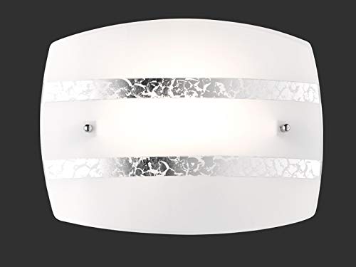 Bellissima lampada da parete con paralume in vetro bianco opale con 2 strisce decorative in argento incanterà la vostra casa