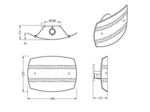 La lampada ha un'altezza di 22 cm, larghezza di 30 cm e profondità di 7,5 cm