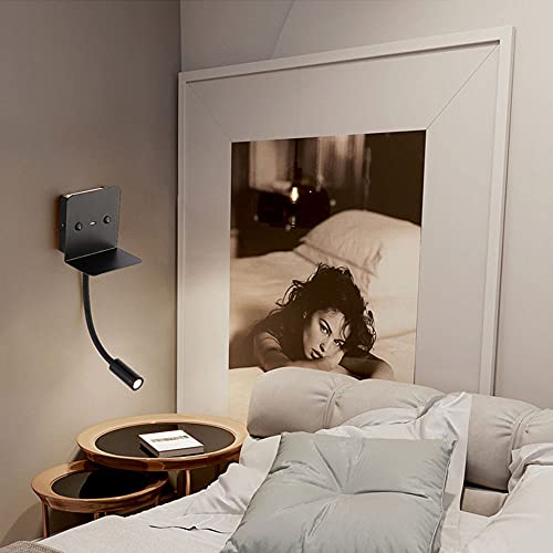 Applique USB LED da Parete Comodino Interno Luce, 3W / 3W 2 in 1 Lampada da Lettura a Flessibile 3000K Bianco Caldo Lampada da Muro con Vassoio e 2 Interruttori Faretti da muro, lunghezza collo:40cm