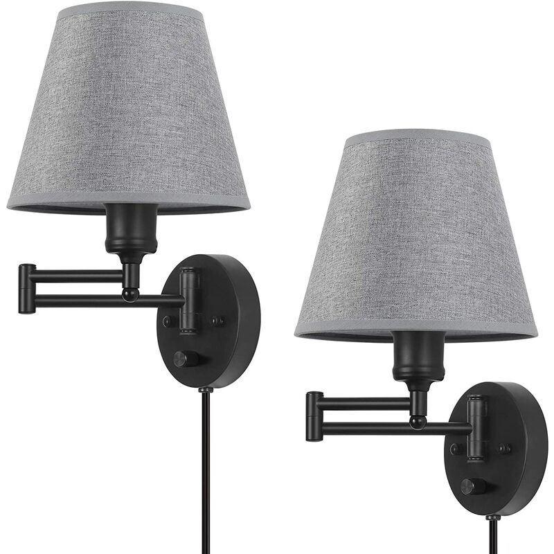DESIGN MODERNO: non è solo il braccio oscillante ultrafunzionale che lo rende perfetto: applique da parete plug-in con testa regolabile, puoi regolare l'angolo della luce in base alle tue esigenze. Il paralume in lino grigio e la luce soffusa creano un'atmosfera calda, romantica, confortevole e rilassata. Ideale per camera da letto, soggiorno, sala da pranzo, ufficio, scrivania ecc. CONVENIENZA DIMMERABILE: l'interruttore di regolazione della luminosità ti consente di modificare i livelli di luce con impostazioni di luce alta e bassa per fornire la quantità di luce perfetta per qualsiasi situazione. Interruttore dimmer sulla piastra posteriore dimmerabile solo con lampadine E27 dimmerabili compatibili (MAX 60 W) (Blub non incluso). CAPACITÀ DI COLLEGAMENTO O HARDWARE: collega la luce collegandola a un oggetto facilmente spostabile o cablarla posto per un design duraturo. Tutto l'hardware di montaggio viene fornito per un'installazione rapida e semplice. Tutto l'hardware di montaggio