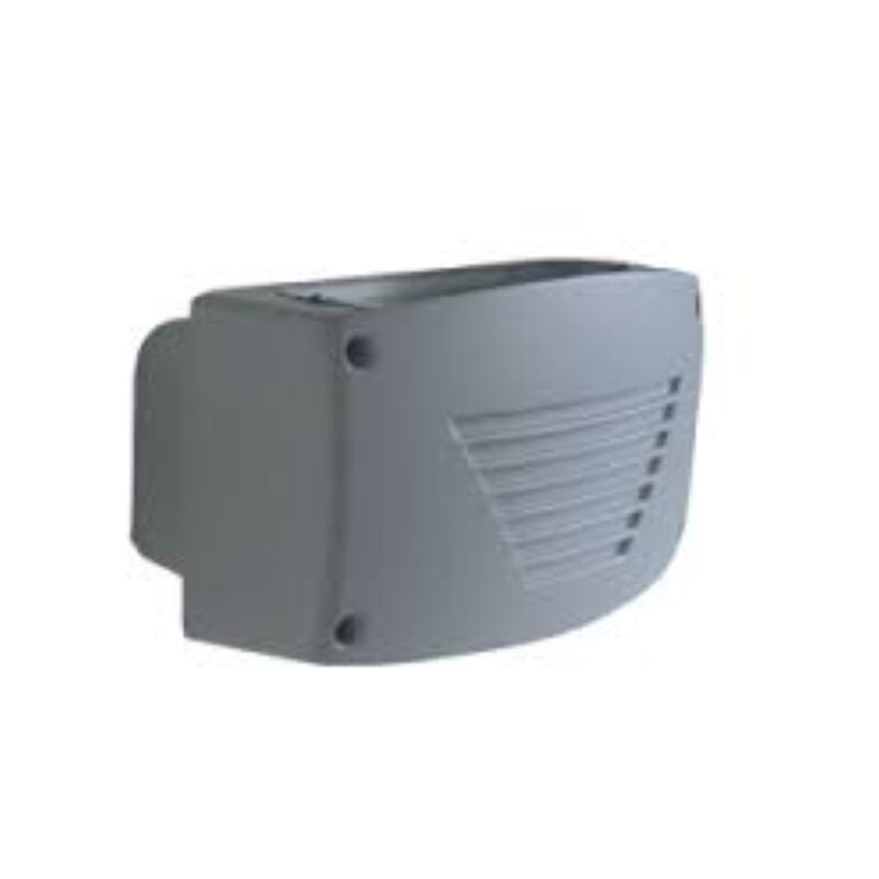 APPLIQUE DA PARETE PER ESTERNI, IN ALLUMINIO PRESSOFUSO GRIGIO, E VETRI DIFFUSORI TRASPARENTI;