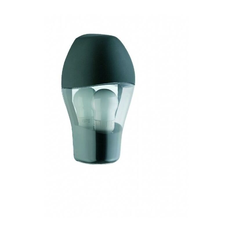 Apparecchio di illuminazione per esterni ip65, da installare a parete, realizzato in alluminio pressofuso color grafite e diffusore in policarbonato trasparente;
