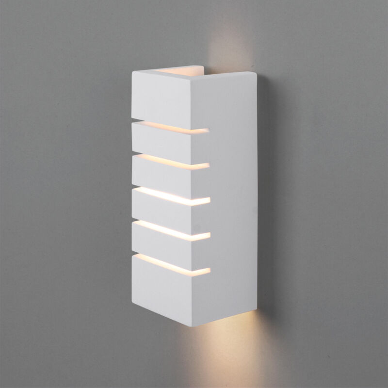 Applique in gesso Line. Si integra perfettamente in qualsiasi ambiente perché può essere verniciata nel colore desiderato. Con un design dalle linee rette ed eleganti, offre un'illuminazione indiretta molto decorativa. Trasforma i tuoi spazi interni con le nostre applique da parete, che offrono design e funzionalità aggiungendo un tocco contemporaneo. *Lampadina E14 - Non inclusa*