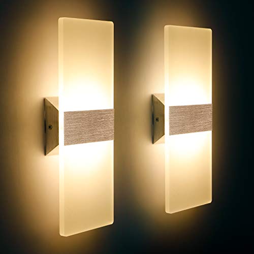 Applique da Parete Interno Moderno LED 12W Lampada da parete Bianco Caldo 2700K Lampada da Muro per Soggiorno Corridoio Bagno Applique Bagno Luce Notturna(2 pack)