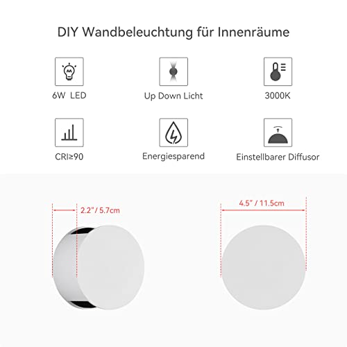 Morbido e confortevole: luce bianca calda 3000 K, 6 W, nessun abbagliamento, protezione per gli occhi, si adatta a tutti gli stili di decorazione. Non sono le più grandi e non le più luminose, ma producono un bellissimo effetto luminoso pulito sulla parete. Le nostre moderne lampade da parete a LED sono perfette per il vostro spazio creativo come illuminazione decorativa unica, non come unica illuminazione.