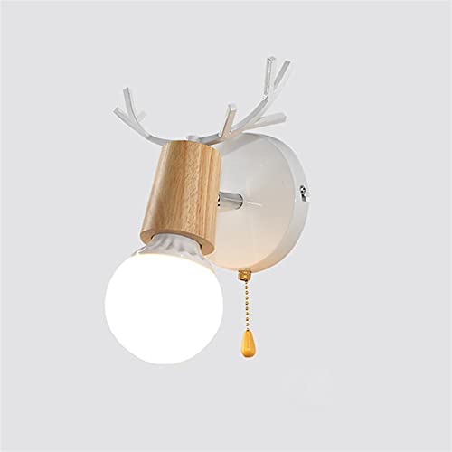 Applique da parete Vanity Light Lampada da interno in legno e metallo Mini Antler, applique da parete con interruttore a tirante, luci notturne minimaliste per soggiorno Camerette per bambini Comodino