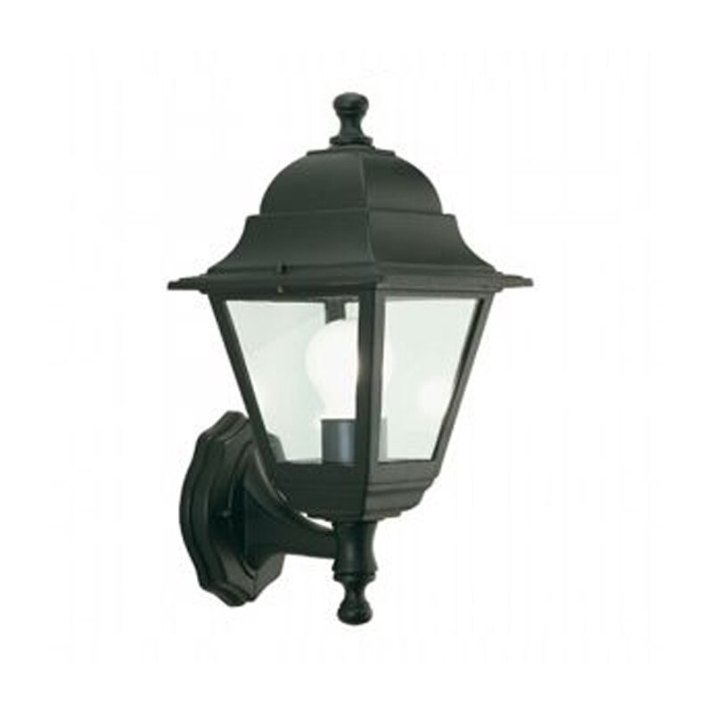 Collezione Old CLASSICA E DI GRAN STILE Applique per esterno a 1 luce con struttura in pressofusione di alluminio color nero e diffusore in vetro trasparente, rivolta verso l'alto.. Adatta per lampada con altezza massima 170 mm (non inclusa). Disponibile anche in bianco argento, di altezza maggiore (42 cm) e nella versione rivolta verso il basso.