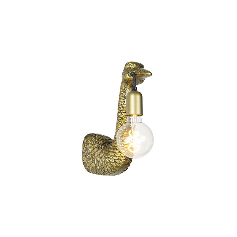 QAZQA Applique vintage in ottone - CAMEL BIRD Brillerai subito con questa lampada! La sua figura allegra ricorda uno struzzo. Questo è senza dubbio un punto di attrazione per i tuoi interni. La lampada da parete è realizzata in alluminio con acciaio ed è rifinita in ottone. Questo gli conferisce un aspetto moderno. Ha una profondità di 24,5 cm, un'altezza di 31 cm e una lunghezza di 9,5 cm. La piastra di montaggio ha una profondità di 13 cm, un'altezza di 11,5 cm e una lunghezza di 9,5 cm. Assicurati di ordinare una lampadina E27 (max 25 watt). Per un'atmosfera aggiuntiva, puoi collegare la lampada da parete a un dimmer, che non è incluso. Il CAMEL BIRD è una bella aggiunta al corridoio, alla camera dei bambini o al soggiorno. Illumina i tuoi interni con la lampada da parete CAMEL BIRD. Portalampada: E27 . Max 1 x 25 W, 230 V Adatto a: Incandescente, Algogene, LED,Risparmio energetico Voltaggio: 220V/230V IP Classe di protezione: [IP20] A prova di polvere Funzioni extra: Regolabile