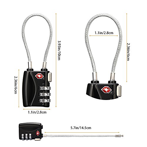 TSA ha approvato il cavo di sicurezza blocchi di viaggio, re-settable 3-Digit combinazione bagagliaio per lo zaino, armadietto da ginnastica (Singolo pacchetto)