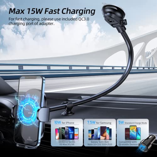 APPS2Car Caricatore Wireless Auto, Supporto Cellulare Auto Wireless Ricarica per Ventosa Parabrezza Presa D'aria, Porta Cellulare Auto per 12/1314/Pro Max/Mini Samsung LG e Altri