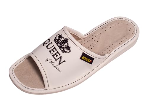APREGGIO Pantofole Donna Pelle - Comode Pantofole da Donna Pelle - Pantofole Pelle Leggere - Pratici Pantofole da Donna con Suola in Gomma - Confortevole Scarpe Donna