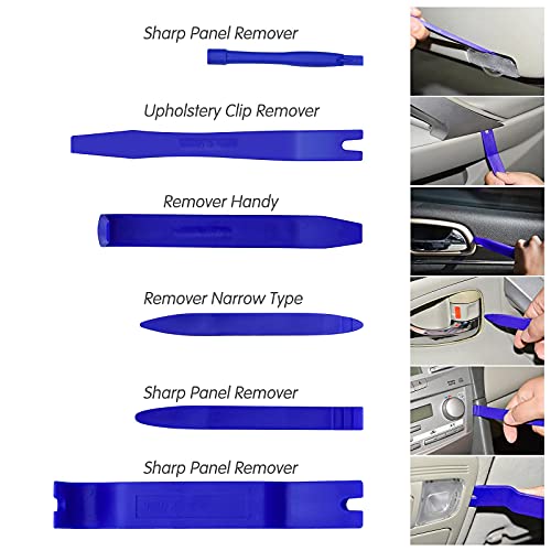 Aprilye Kit Leve Smontaggio Pannelli Auto, 8 Pezzi Strumento Leve di Rimuovi Plastica per Auto Porta Pannello, Radio, Cruscotto, Cunei Leve Refit, Blu