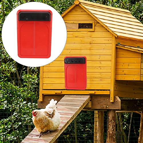 Apriporta Automatico per Pollaio, Porta per Pollaio in Plastica con Rilevamento della Luce Facile Installazione, Porta per Pollai con Funzionamento Semplice Alimentato a Batteria (Rosso)