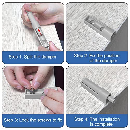 Ampia applicazione: questo ammortizzatore per ante dell'armadio è pratico, con un semplice aspetto grigio, può essere utilizzato come ammortizzatore per la porta dell'armadio per quasi tutti i cassetti, le ante dell'armadio. E questo ammortizzatore per porta per armadio è ampiamente usato e adatto per casa, ufficio, scuola e altri luoghi.