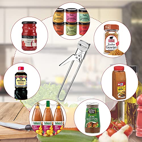 Apriscatole Regolabile,Apriscatole per Anziani Mani Apriscatole per Coperchio Apribottiglie Acciaio Inox Apriscatole Multifunzionale(Argento)