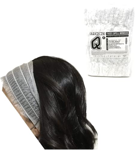 AQASKIN - 200pz. Fascia Elastica Capelli Monouso in TNT - Imbustate Singolarmente - Fasce Testa Usa e Getta per Estetista, Spa, Centri Benessere (Quantità 200 pz)