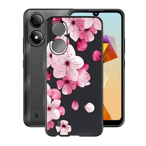 AQGG Custodia per ZTE Blade A33s (6.30") Cover, Black Protettivo Sottile Morbido Silicone Custodia Protezioni Skin Bumper - Fiori di pesco