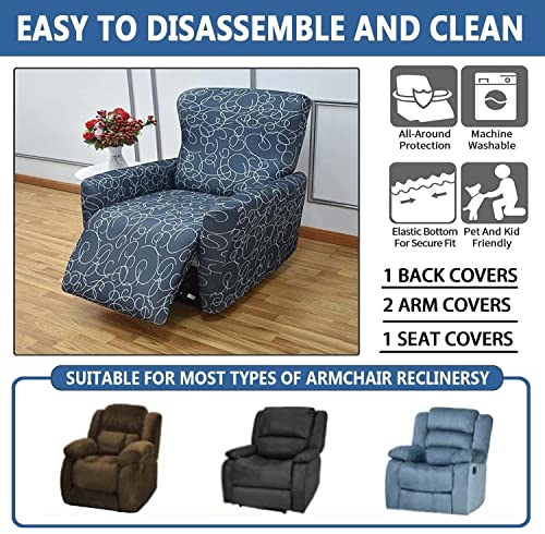 AQIGR Copripoltrona Relax Reclinabile Completo 4-Pezzo Fodera per Poltrona Elasticizzato 1 Posto con Tasche, Coprisedile Poltrona Lavabile Antiscivolo Copripoltrona (Color: #30)
