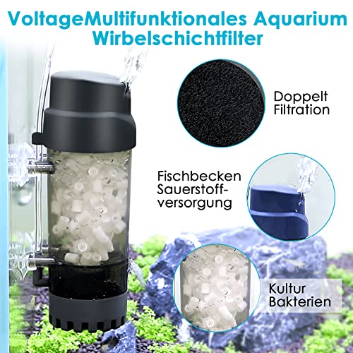 AQQA Acquario Fluidized Mobile Letto Filtro, Scaldatore di ossigeno vasca con pietra d'aria, filtro in spugna interna acquario(L)