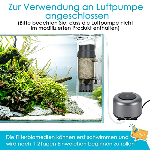 Facile da usare: collegare la pompa ad aria con un tubo, inserirla nell'acquario e può essere utilizzata normalmente. Si consiglia di utilizzarlo dopo l'immersione per 1-2 ore. Prodotto con 4 potenti ventose che possono essere posizionate saldamente intorno all'acquario. Si prega di scegliere una pompa potente per questo filtro in base alle dimensioni del serbatoio.