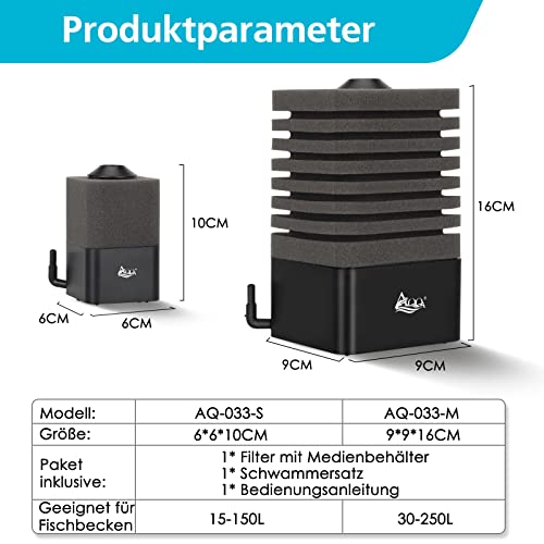 AQQA Filtro in spugna per acquario, filtro silenzioso per filtri biologici e meccanici, filtro in spugna con materia filtrante (S)