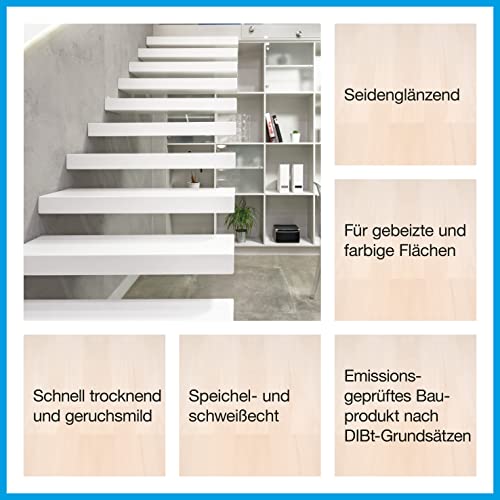 Aqua Clou Vernice sigillante per scale e parquet, 2,5 l: applicazione su nuovi pavimenti in legno e nel quadro della ristrutturazione per assi di scale, gradini in legno e pavimenti in sughero