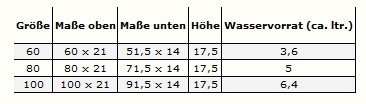 Wasservorrat Ca 3,6 Litri 5 Litri 6,4 Litri