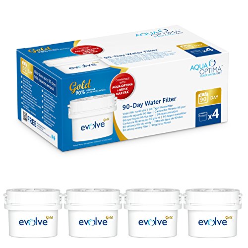 4 filtri Aqua Optima Evolve Gold per 90 giorni = fornitura per 1 anno - Durata di ciascun filtro: 90 giorni - 300 litri
