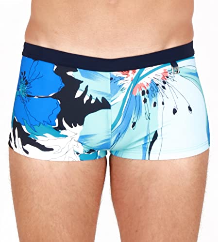 Hom Aqua Swim Shorts Costume a Pantaloncino, Gros Imprimé Floral Camaieu de Bleus, Ceinture Marine, 2XL Uomo