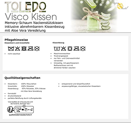 Aqua-textil 1000015 Toledo - Cuscino in Schiuma viscoelastica, in Poliestere, Poliestere, Bianco, 15 cm Höhe