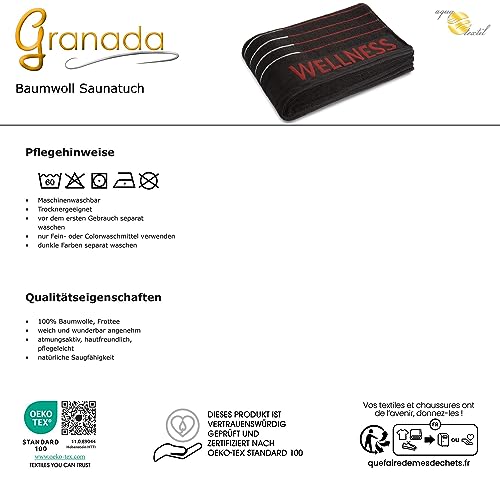 Aqua-textil Granada - Asciugamano da sauna, 80 x 200 cm, in cotone, colore: Nero