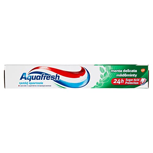 Aquafresh Dentifricio Tripla Protezione, Formula clinicamente testata 3 in 1 per tutta la famiglia, Protegge le Gengive, Rinforza lo Smalto e Rinfresca l'Alito, Gusto Menta Delicata, 75ml