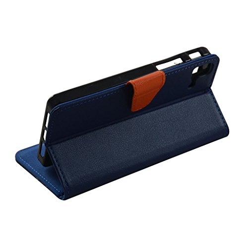 BQ Aquaris E5 Custodia,Mama Mouth Portafoglio custodia in PU di cuoio pelle con supporto carte di credito in Piedi caso Case per BQ Aquaris E5 HD 4G Smartphone,Deep Blue