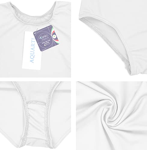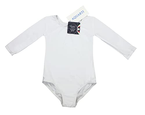 Aquarti Body da Ginnastica da Bambina con Maniche a 3/4, Bianco, 140
