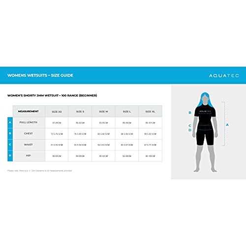 AQUATEC Muta Shorty Per Donne - 2x Spessori: 2mm & 3/2mm | 6 Taglie Disponibili | Mute Per Ragazza | Neoprene Flessibile & Zip Posteriore | Eccellente Per Sport Acquatici (XL, 2mm | Principianti)