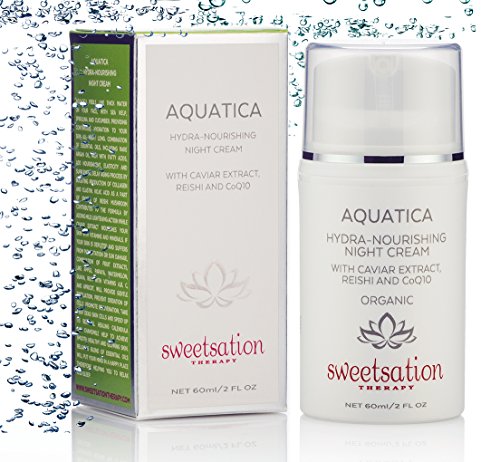 AquaTica Organic Antiaging Botanical Night Cream with Caviar Extract, Reishi and CoQ10, 60 ml. Super Hydrating, Soothing, Calming. Natural and Organic Ingredient