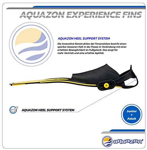 AQUAZON pinne EXPERIENCE, pinne regolabili, pinne da snorkeling, pinne da immersione, pinne da nuoto per bambini e adulti per lo snorkeling, il nuoto, colour:yellow, Dimensione:30-35