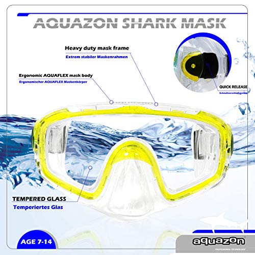 AQUAZON Shark AQMASHBL - Maschera per Immersioni, Giallo (Giallo Trasparente), M