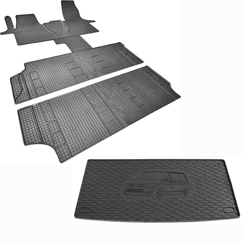 Car Lux - AR06565 AR05847 AR05846 AR05955 Tappeti in gomma su misura per T6.1 L1 Multivan (Modello Corto) a 8 posti (due posti anteriori) + Tappeto in gomma per bagagliaio dal 2019 ad oggi.