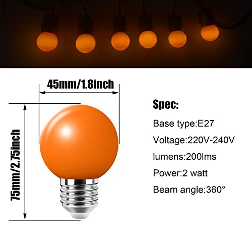 E27 arancio golf light LED piccolo Edison a vite colore lampadina 2W, lampadina a risparmio energetico equivalente a 20W lampadina a incandescenza, adatto a terrazza party lampadina, 10 confezioni