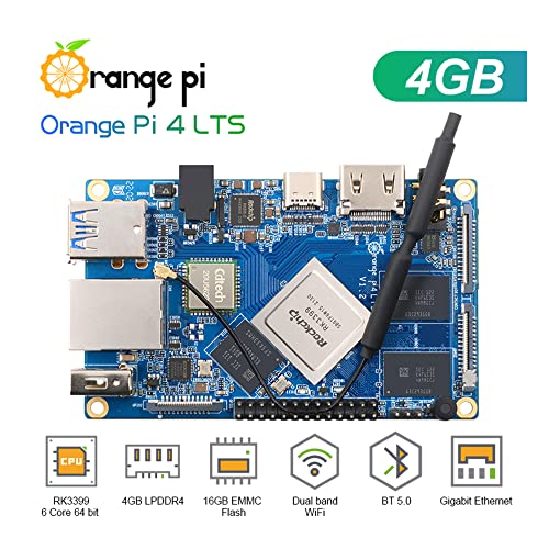 Arancione Pi 4 LTS 4GB LPDDR4+16GB EMMC Rockchip RK3399, Supporto Wifi+BT5.0, Gigabit Ethernet, Esegui Android, Ubuntu, Debian OS
