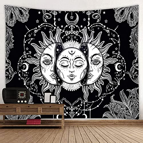 Arawat Arazzo Sole Arazzo bianco nero Arazzo Luna Sole Arazzo Psichedelico Tappeto Arazzo Gotico Arazzo Trippy Arazzo Appeso a parete Decorazione murale Boho (150 x 130cm)