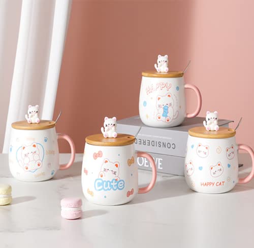 Arawat Tazza gatto con coperchio Tazza gatto carino regalo 400 ml tazza caffè in ceramica con cucchiaio e sottobicchiere Natale cacao tè tazza caffè carino regalo di compleanno per la fidanzata
