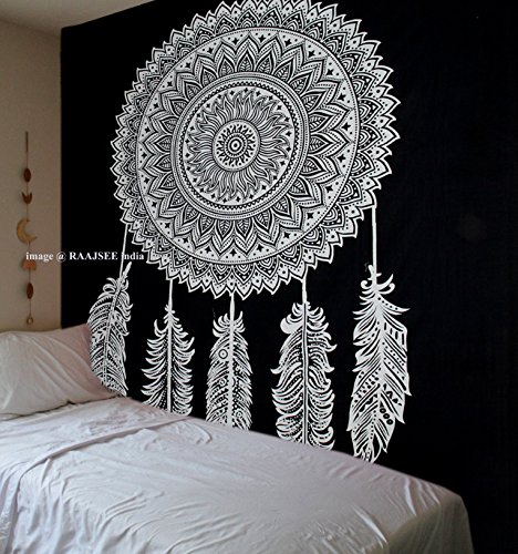 Arazzo in cotone indiano con motivo mandala in bianco e nero, ottimo regalo di Natale, 220 x 230 cm, Cotone, Black, 220*240 cms