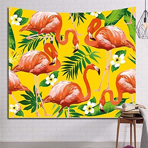 Arazzo decorativo con fenicottero rosa e piante esotiche, foglie di palma tropicale, da appendere alla parete (GT03) Yellow