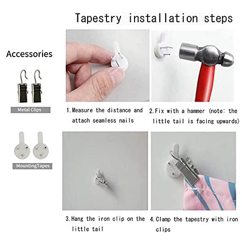 Dimensioni: 70 x 100 cm, 150 x 130 cm, 150 x 200 cm, 180 x 230 cm. Si può appendere facilmente con puntine decorative o puntine da disegno. Lavare a secco o in acqua fredda, non utilizzare candeggina.