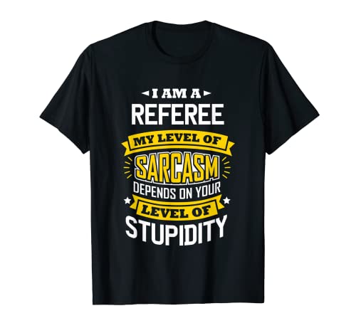 Maglietta a tema arbitro. Sono un arbitro il mio livello di sarcasmo dipende dal tuo livello di stupidità - t-shirt per arbitri. Idee per arbitri di tutti i tipi: arbitri di calcio, arbitri di basket, arbitri di baseball.