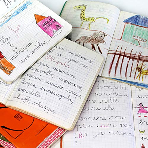 inserto centrale con riproduzione a colori di immagini tratte da quaderni utilizzati da studenti degli anni 60
